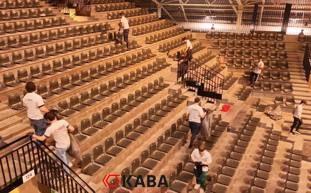 Schoonmaak voor, tijdens en na evenementen. Wij zorgen dat jouw zaal, tribune of hal altijd fris en gebruiksklaar is.